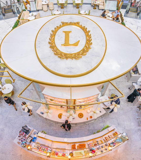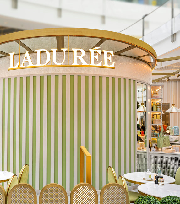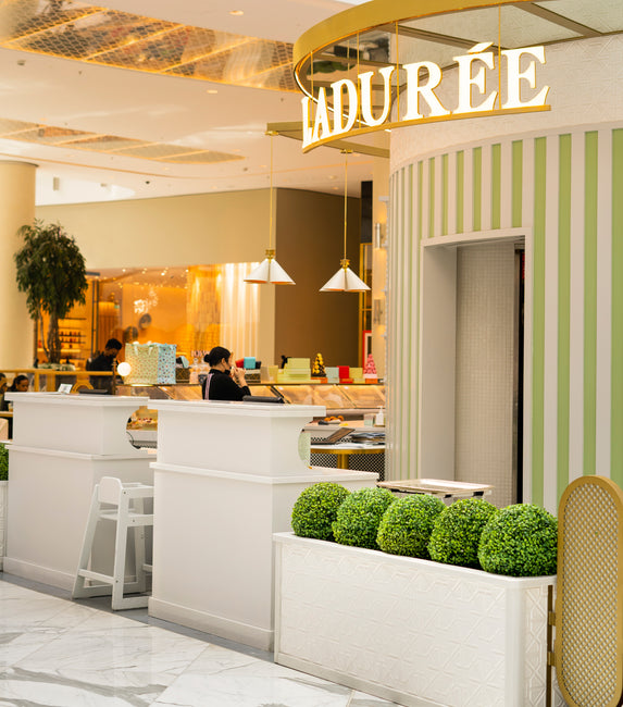 An elegant Ladurée restaurant in the Dubai Mall Extension, offering refined French cuisine, iconic macarons, and a stylish pause in the world’s largest shopping destination.
