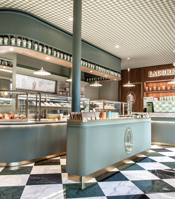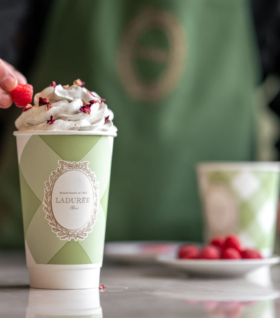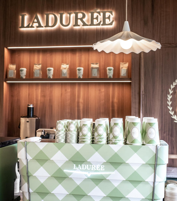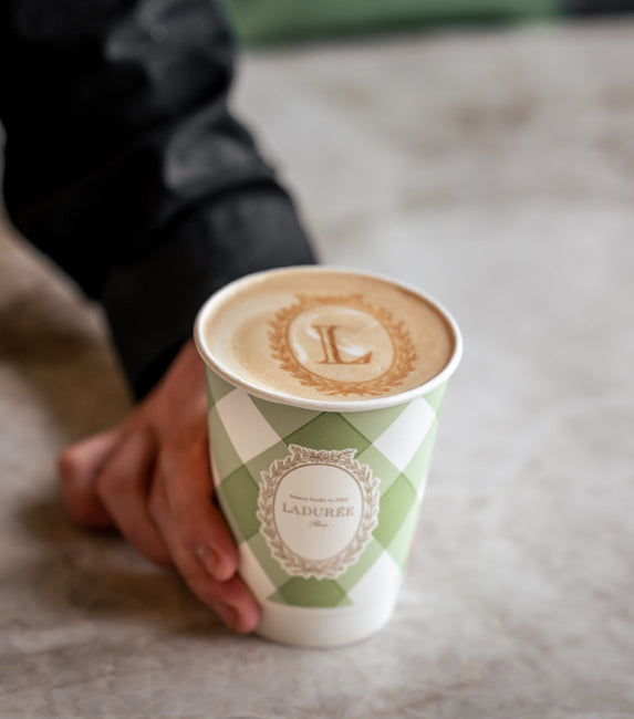 This new Ladurée boutique concept offers a wide selection of drinks and treats to take away. Enjoy exceptional coffees, creamy lattes, refined teas, and signature delights for a gourmet experience blending tradition and modernity.