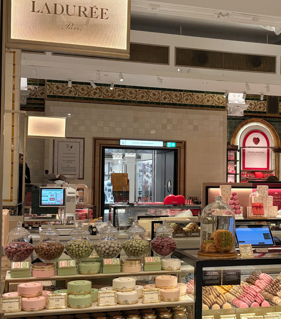 Ladurée Harrods, first Ladurée boutique abroad, offers a VIP Parisian experience in the elegant luxury Chocolate Room near the emblematic Food Hall in Knightsbridge. Iconic macarons, exquisite pastries, and exclusive treats.