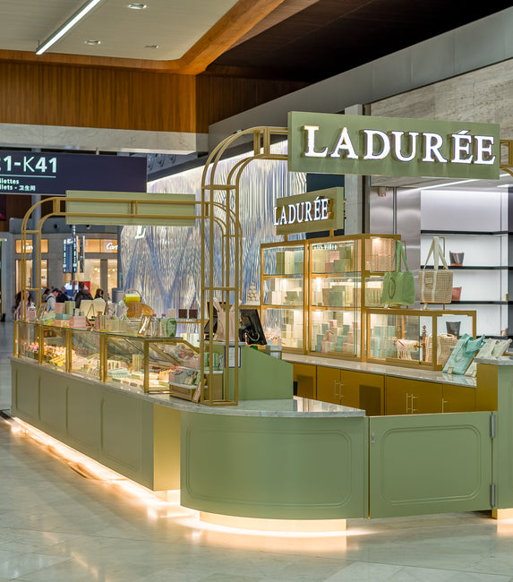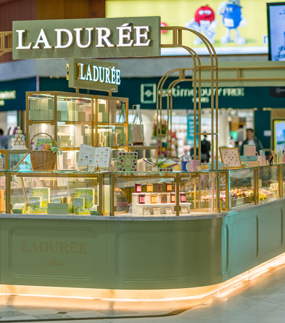 In the heart of Paris’s major airport terminals, Ladurée delights travelers with its signature creations—macarons, Eugénie, chocolates, and accessories—offering a refined gourmet escape at every moment of your journey.
