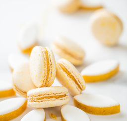 IconicTwo macaron shells filled with a creamy filling made from lemon (zest, pith, flesh, juice).