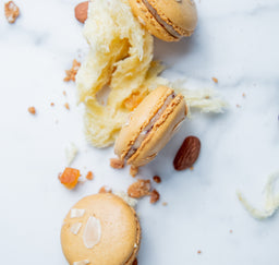 IconicTwo macaron shells made with roasted raw almonds, filled with a bitter almond cream.
