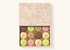 - "The Magical Garden" 15 macarons : Sugar, ALMOND, egg white, CREAM, BUTTER, water, dark chocolate (cocoa beans, sugar, cocoa butter, vanilla extract, emulsifier: sunflower lecithin (E322)), cocoa butter, raspberry, syrups (glucose, dehydrated glucose, sugar), whole MILK powder, juices (lemon, passion fruit), lemon, passion fruit, corn starch, concentrates (turmeric, spirulina, apple), PISTACHIO, morello cherry, egg white powder, lime (zest, juice), potato starch, mango, teas (black, green jasmine-flavored, green), EGG, maltodextrin, color: beta-carotene (E160a(iii)), plant and fruit extract blend with coloring properties (acerola, beetroot, lemon), cocoa (beans, powder), coffee, vanilla (spent, pod, concentrate, spent powder), inverted sugar, gelling agent: pectin (E440i), emulsifiers: sunflower lecithin (E322), glycerol (E422), xanthan gum (E415), sucrose, acidity regulator: potassium carbonates (E501), yuzu juice, bergamot flavor, salt, natural flavors (lemon, vanilla, orange, kumquat, honey, lime, grapefruit, rose, jasmine), natural raspberry extract, rose essential oil, orange peel, rose petals, pineapple.