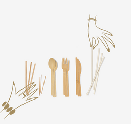 Cutlery, skewers, stirrers, and other wooden items should be recycled.