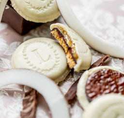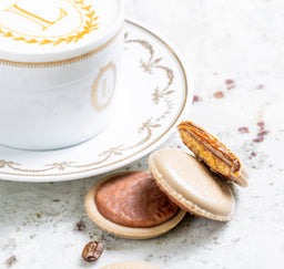 Edition limitéeUne coque chocolat blanc au café, un cœur caramel café au lait et un sablé shortbread enrobé de chocolat au lait.