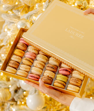 Découvrez l’univers des fêtes Ladurée : une sélection de douceurs d’exception, des macarons aux marrons glacés, pensée pour magnifier vos moments de Noël.